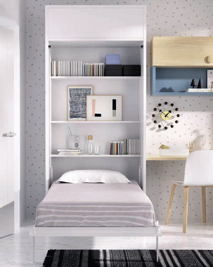 En dos metros, tienes cama, cajones.. todo lo necesario en el mínimo de espacio.